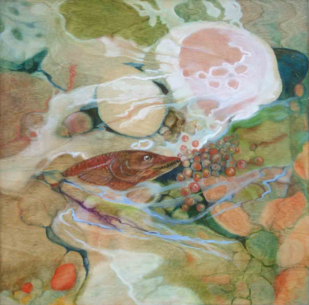 Previous Next Post Fish in Stream Fish in Stream – oil on wood – 24″x24″ Permalink Filed under: Animals